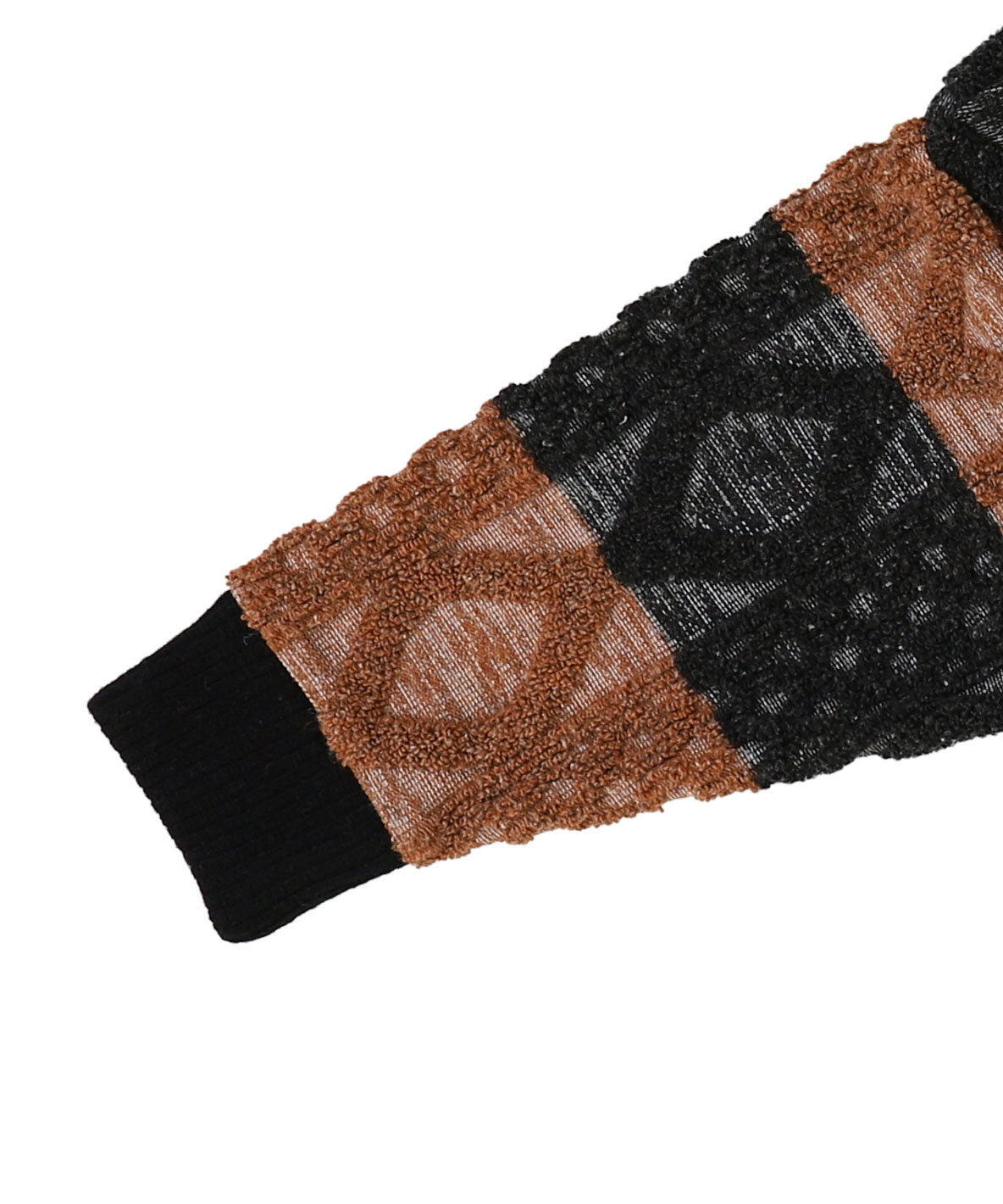和歌山県で編み立てた、FITHオリジナルの日本製ジャガードパイル素材。太番手のジャズネップ糸を使用し、ざっくりとした縄編みのパイル組織と太ピッチのボーダー柄を組み合わせています。ネップの柔らかな表情とナチュラルな風合いが魅力で、見た目にもあたたかみのある素材です。しっかりとした肉感がありながらも速乾性が高く、デイリーに使いやすいのもポイント。素材の個性と着心地の良さをどちらも楽しめる、こだわりの一枚です。