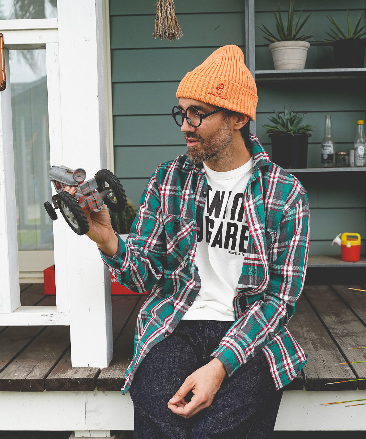 ムラ糸で作ったDDオリジナルのチェックシャツ。味わいのある色味がお洒落です。生地を薄くしているので汎用性もあり重宝します。