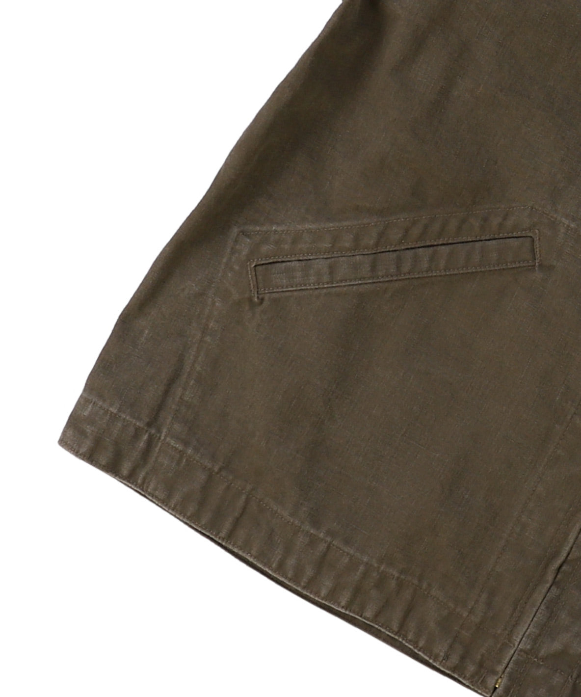 1940年代のワークジャケットの形を踏襲したダック生地のワークジャケット。デニムのように着込むほど肌に馴染み、経年変化も楽しめ愛着が深まります。また背面のアクションプリーツで肩の動かしやすさを確保しています。