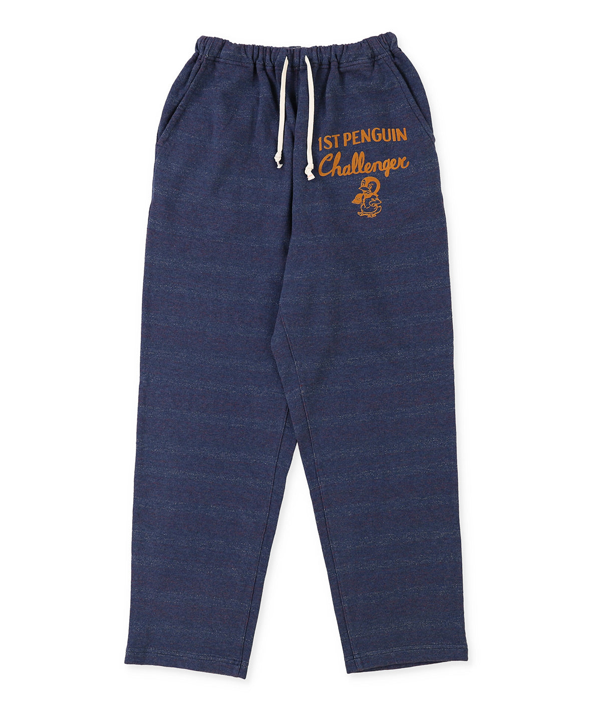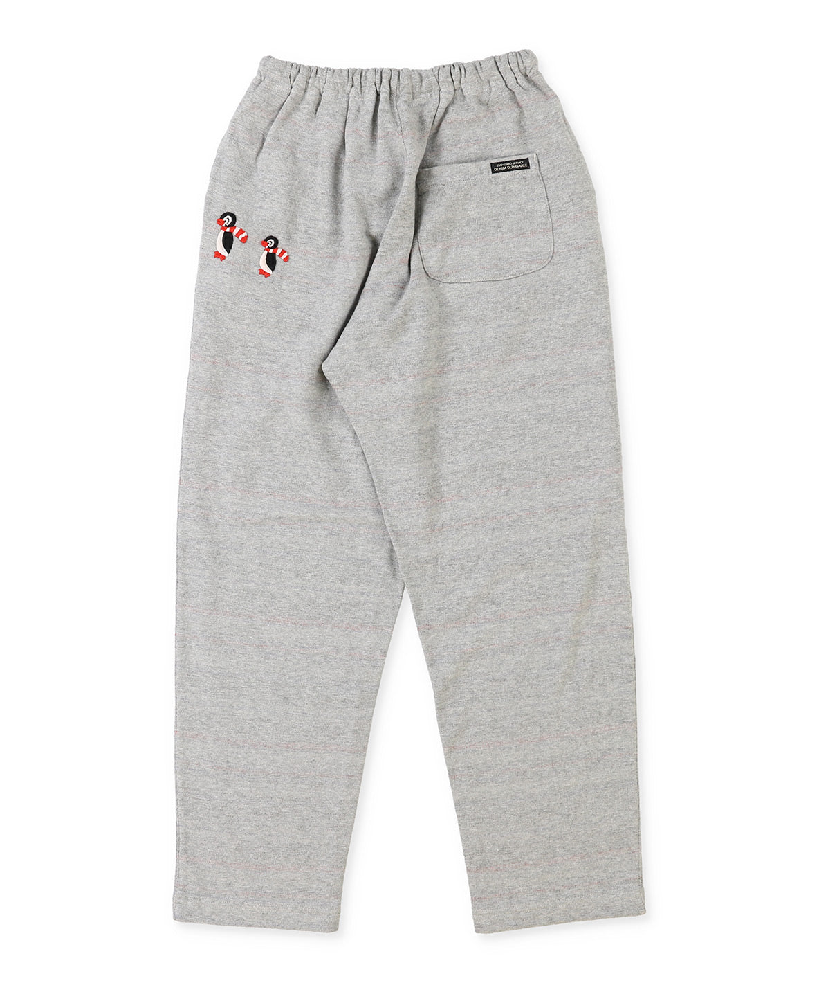 裏がボーダー起毛になったDDオリジナルの生地を使ったファーストペンギンスウェットパンツ。 裾を折り返すとチラッとマルチボーダーが見えてお洒落度アップします。