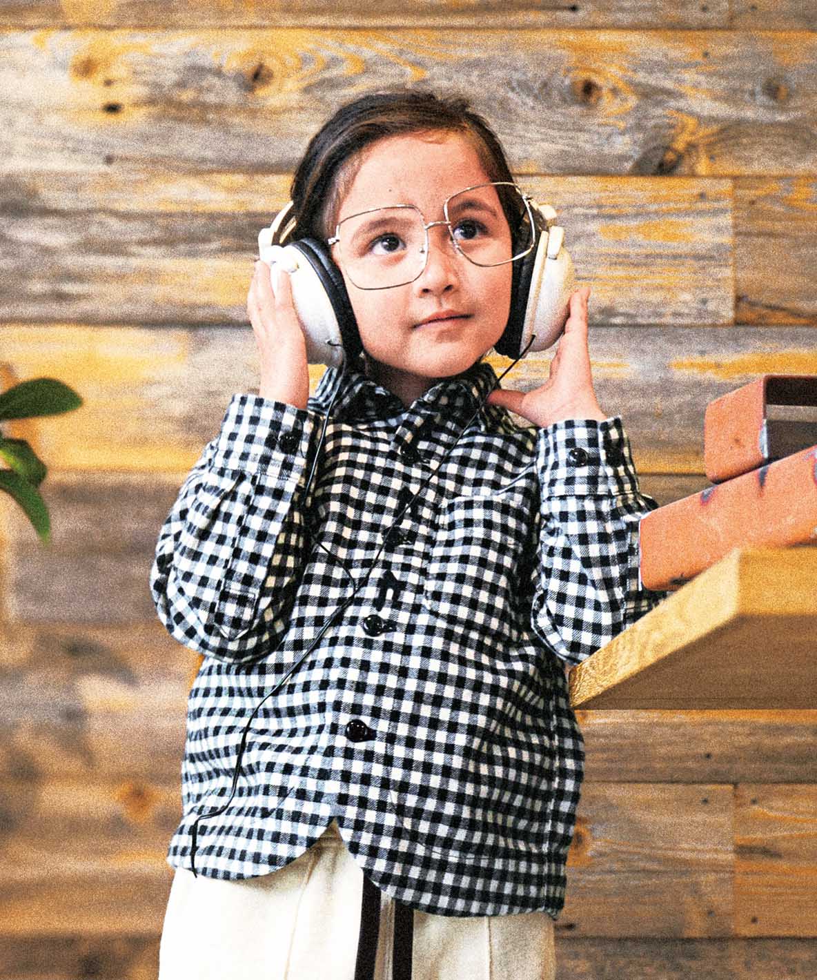 釦が音符になっている、かわいいチェックシャツです。ハタとボウの部分は刺繍で表現しておりコンパクトすぎず、大きすぎないちょうど良いサイズ感と、柔らかい素材なので着心地抜群です。男の子にもおすすめのアイテムです。