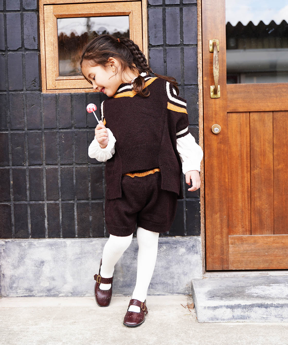 チルデンニットを2枚リメイクしたオープンショルダーのベストです。ローンのブラウスなどに重ね着したり、肩が空いている部分に腕を通して、秋口にはTシャツの上に変形ベストとしても着用していただけます。