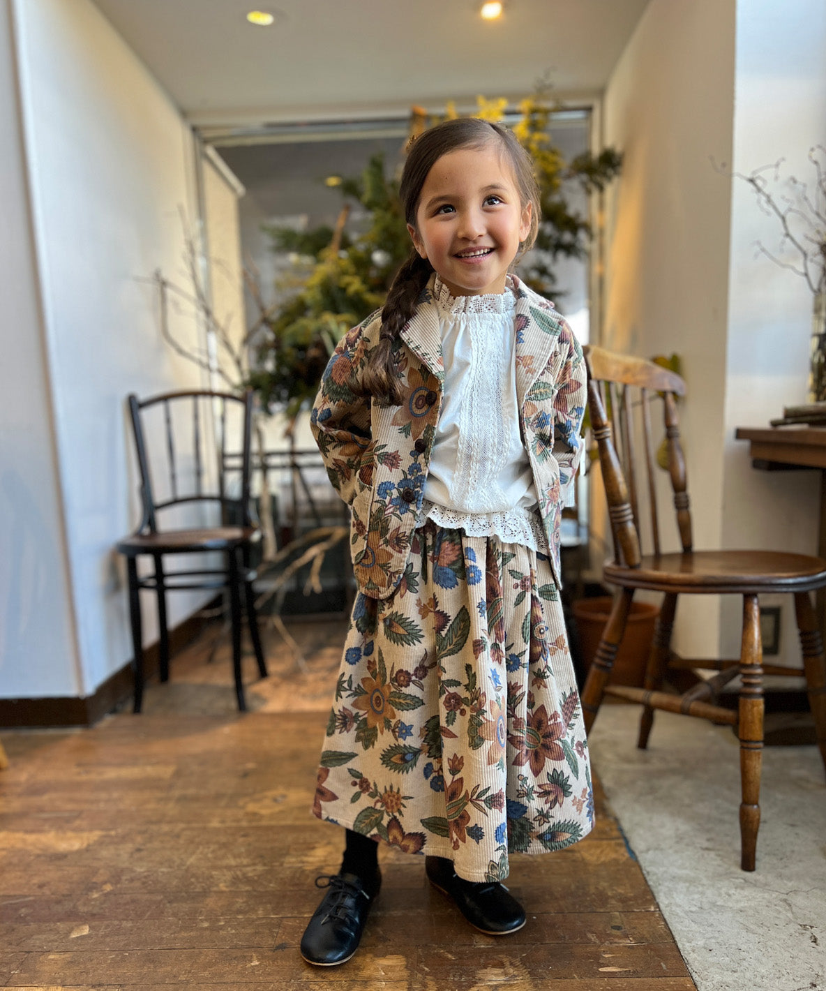 ベースは太めの畝でしっかりと仕上げた8Wコールテン生地です。 日本の抜染プリントでボタニカル柄を表現した生地になります。ベース生地を一度地染めし、そこから一度柄の部分の色を抜き、再度色を入れて柄を出す、といった手間のかかるプリント手法です。 抜染プリントならではの雰囲気が良い柄表現を実現した、プリント工場の技術が詰まった素材です。1枚でインパクトがあり、総ゴム仕様で履きやすい裏地付き・サイドポケット付きのギャザースカートです。
