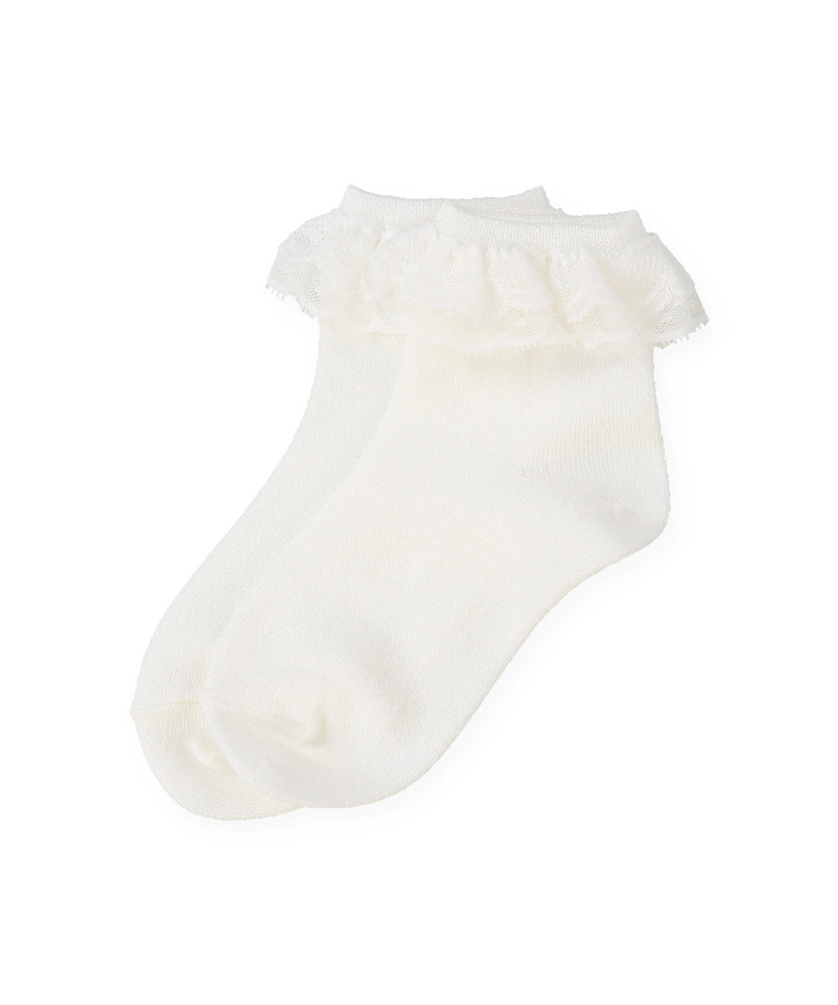 履き口には、たっぷりとあしらった2段のレースが女の子らしさを引き立て、足元を華やかに演出してくれます。