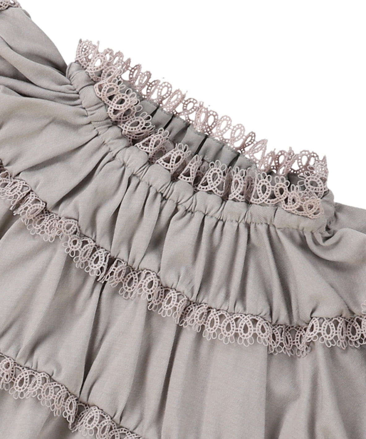 さらに、袖や裾にあしらわれた繊細なレースが、ナチュラルな可愛らしさと上品な華やかさを添え、普段使いから特別な日のコーディネートまで幅広く活躍します。