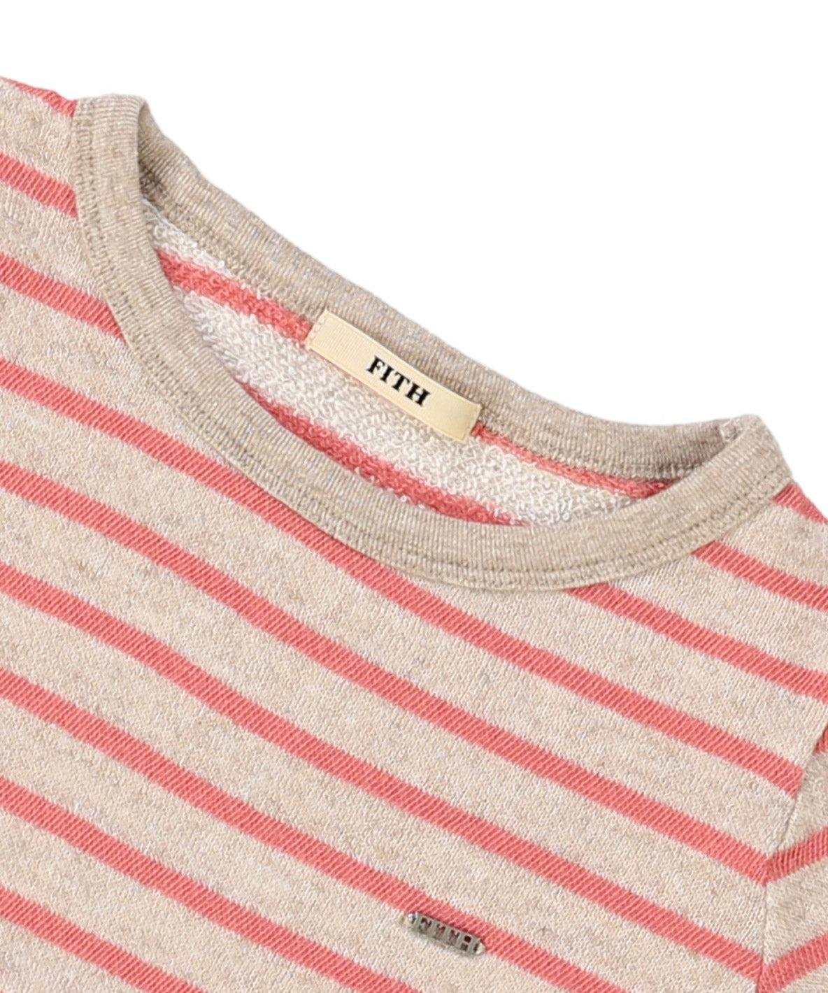 表糸に綿麻の糸と先染めの綿糸を組み合わせてボーダー柄に編み立てた、FITHオリジナルのミニ裏毛素材を使用しています。