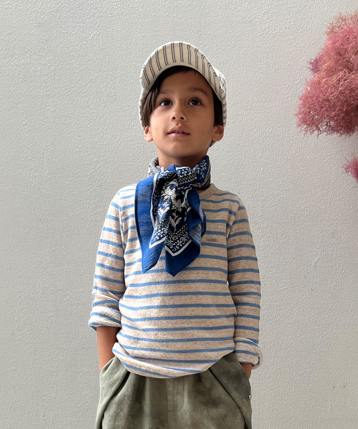 FITHオリジナルのミニ裏毛素材を使ったこのボーダー柄の長袖Tシャツは、綿麻の糸と先染めの綿糸を組み合わせて編み立てられており、肌に触れる裏糸は綿100%でとても優しい肌触りが魅力です。