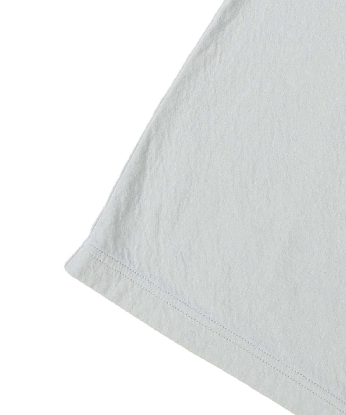 接結組織で編み立てる事で、間に空気層が生まれその為に保温性の高い日本製の素材を使用。通常の接結素材に比べて、接結点が少なく、また極細の糸を使用している為、表面がフラットで天竺の様に見えて接結のフワフワな素材感がまさしくフェザーの様です。更に加工にもこだわり、綿本来が持つソフトで優しい風合いを引き出した特殊な加工を施しております。天然繊維の綿で温かさ・触り心地を追求して作り上げた素材。