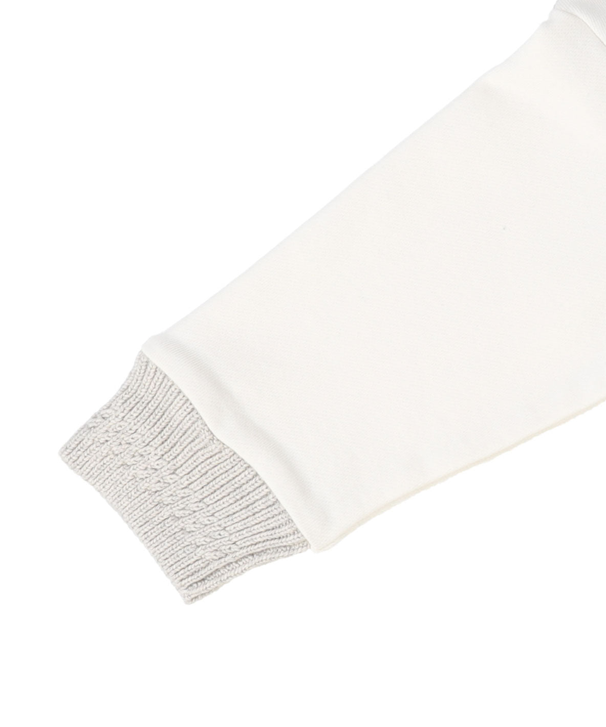FITHオリジナルの裏毛素材で、2本の単糸を撚り合わせた双糸を裏糸に使用することで、ループが美しく整い肌触りもなめらかに仕上がっています。さらに、度目をしっかりと詰めて編み立てることで、通気性を保ちながら型崩れしにくい、しなやかな質感を備えた上質な素材。