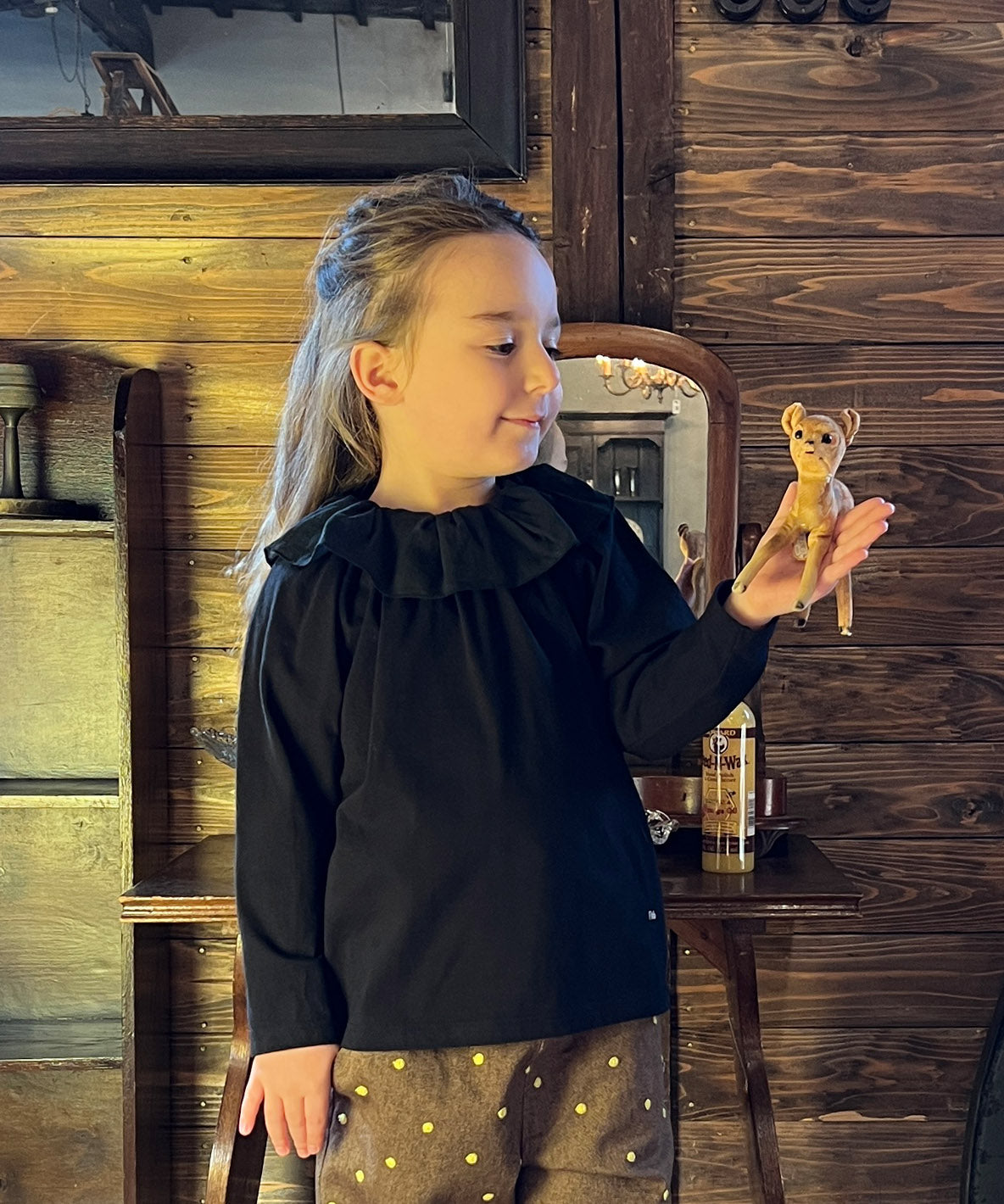 ハイゲージに編むことで、コンパクトでクリアな表面感に仕上げたニットです。薄手でサラッとしたタッチとしなやかな風合いが特徴です。襟元にフワッと軽いシフォンのフリル衿をあしらい、着脱もかぶるだけの簡単仕様です。インナーでも1枚でもきていただける重宝するアイテムです。