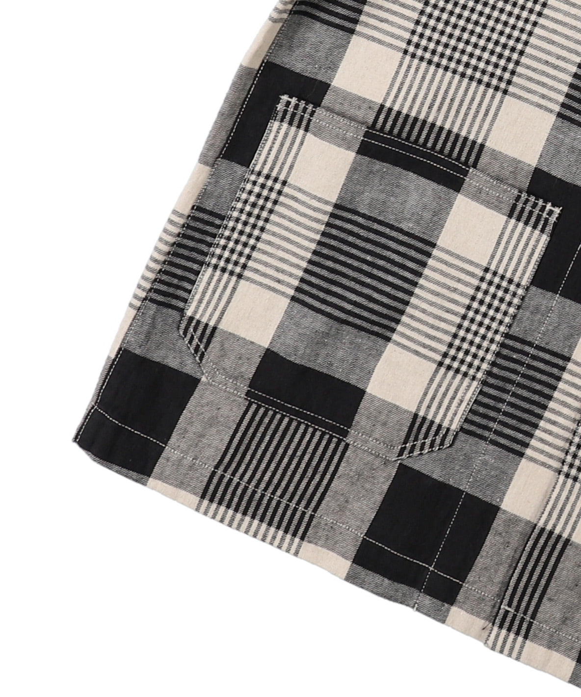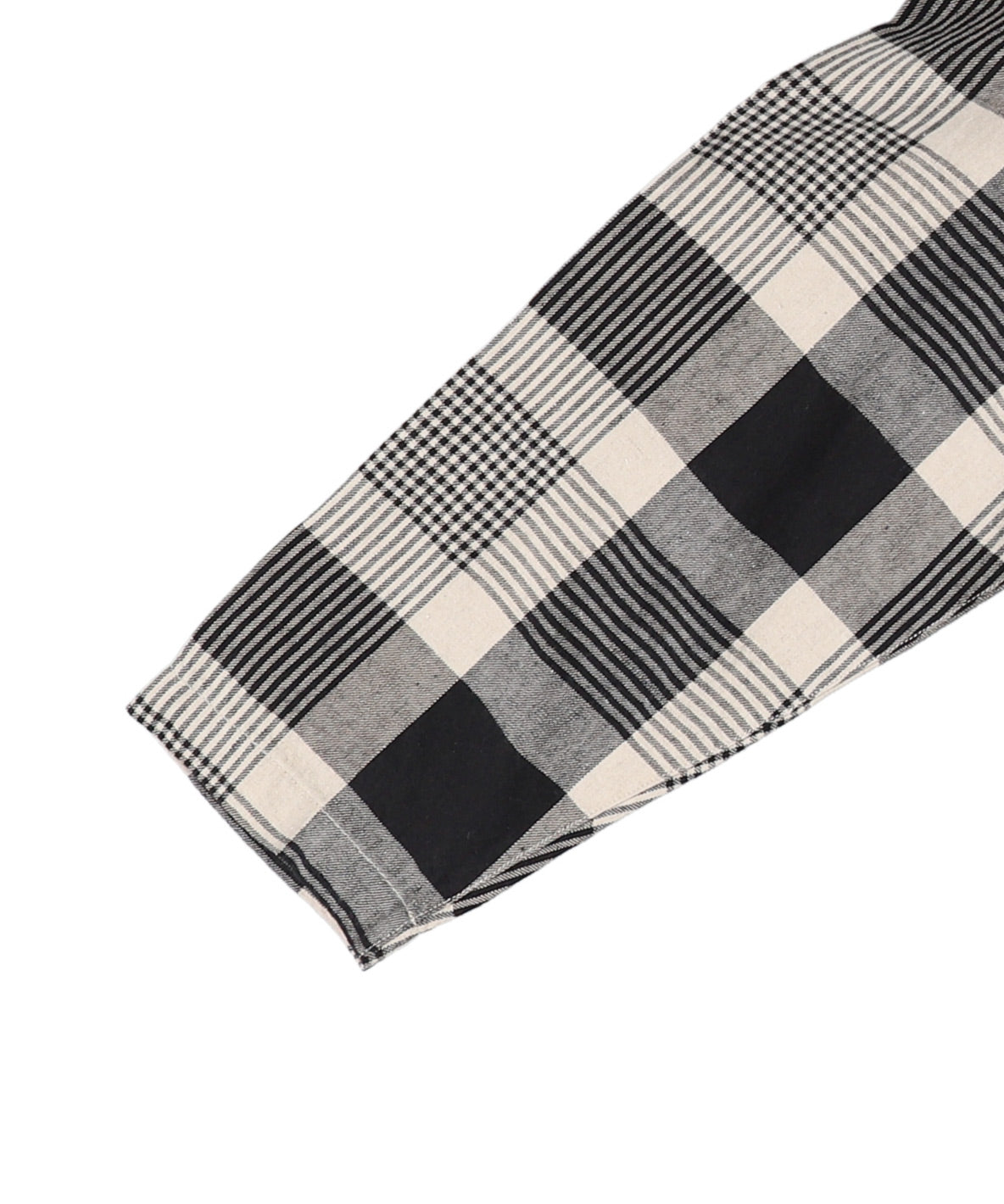 クラフトワッシャー加工を施してヴィンテージライクな凹凸のシワとリラックスした天日干し風合いに仕上げました。1反ずつ加工し、手の込んだクラフト感のある味わい深い表情を出しています。ベーシックなカラーのデッキストライプとビッグチェックで展開しております。シャツ感覚で軽く羽織れる、ゆったりシルエットのジャケットです。12620605のショートパンツとセットアップでも着ていただけます。