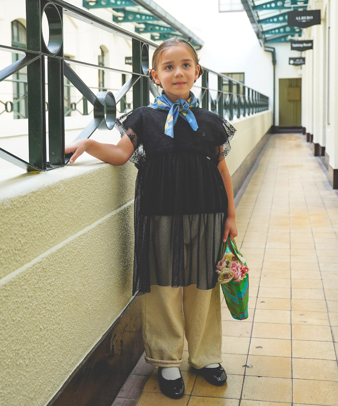 透け感のあるチュール素材に2種類の柄を切り替えています。