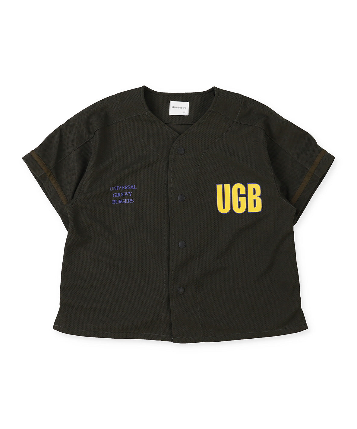 メッシュのような凹凸感のある表情のリサイクル機能素材(吸水速乾、UVカット、抗ピリング)を使用した、夏まで快適な着心地のワイドシルエットのベースボールシャツ。着脱も簡単なドット釦仕様。架空のハンバーガーショップが運営するスポーツチーム、Universal Groovy Burgersをイメージしたグラフィックがポイント。同素材同色展開のパンツ(1642609)とセットアップもおすすめ。