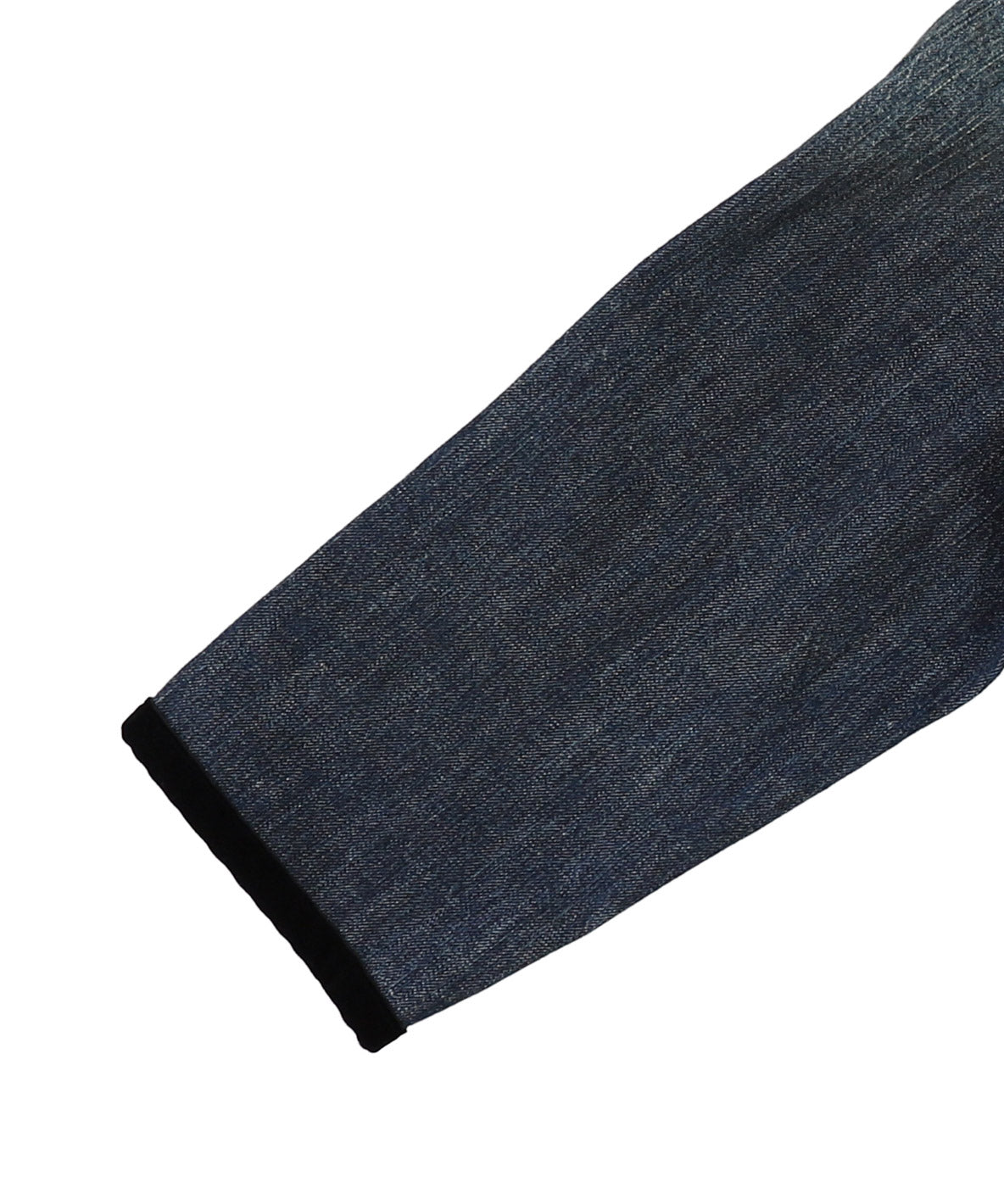 デニムのカバーオールをベロアのリボンテープで縁取りした、オケージョン用リメイクジャケット。22520610のパンツとセットアップで着て頂けます。