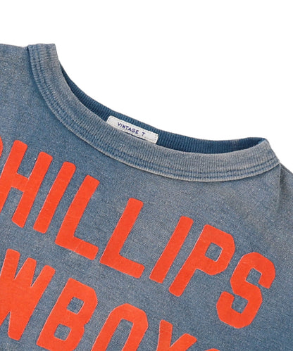 架空のPHILLIPS COWBOYSというフットボールチームT。 文字が羅列されたTシャツですが、1文字づつ手書きで作ることで唯一無二の雰囲気があり、身生地と文字の配色、プリント位置まで全てパーフェクトで、子供さんが着れなくなりお下がりになっても古く感じない様に作っています。