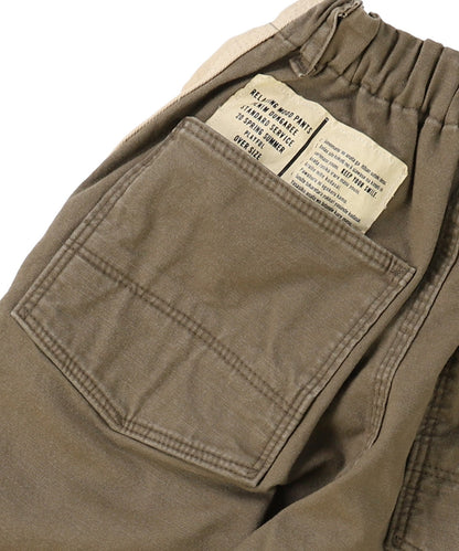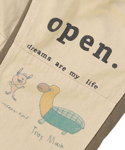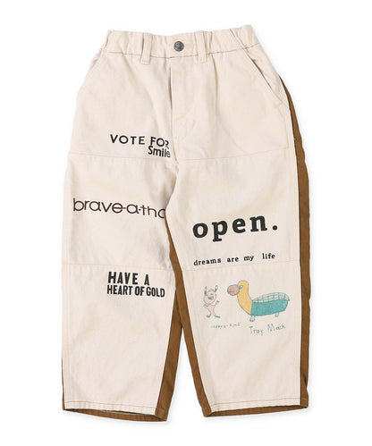 架空の店のエコバック4枚をリメイクをリメイクしてパンツにした設定。 前の生地には綿カスが残っていて、素朴なエコバックを再現しています。 前後の生地が違って存在感抜群です。
