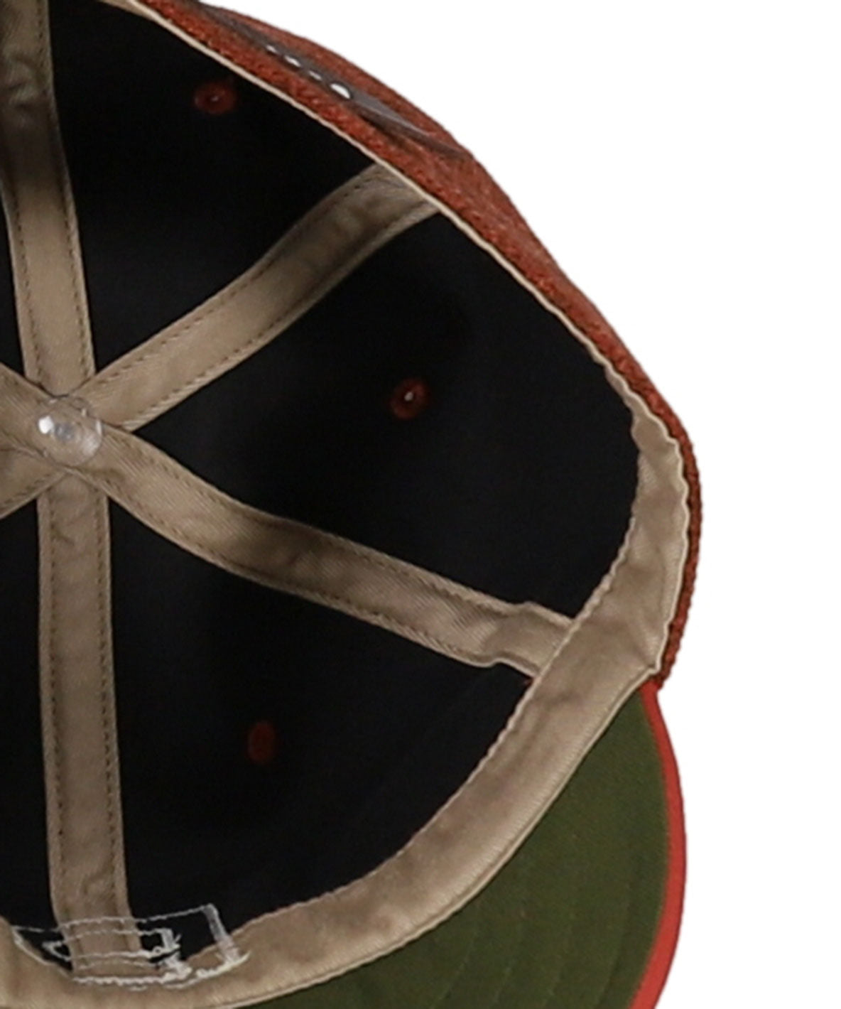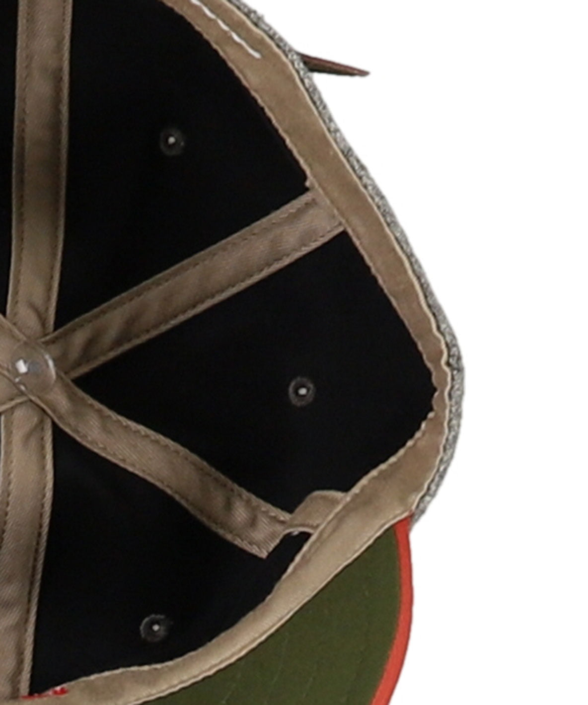 フロントに大きな「B」のアップリケが目を引くキャップ。杢調ボディに、鮮やかなレッドのツバとトップボタンを組み合わせた配色がポイントです。ツバ部分にはロゴプリントを施し、ストリート感のある仕上がりに。カジュアルスタイルにはもちろん、シンプルなコーデのアクセントとしても活躍するアイテムです。