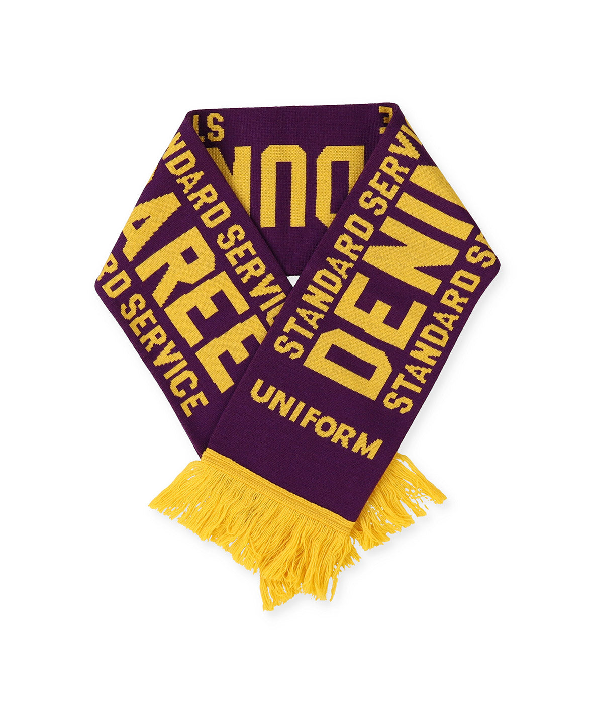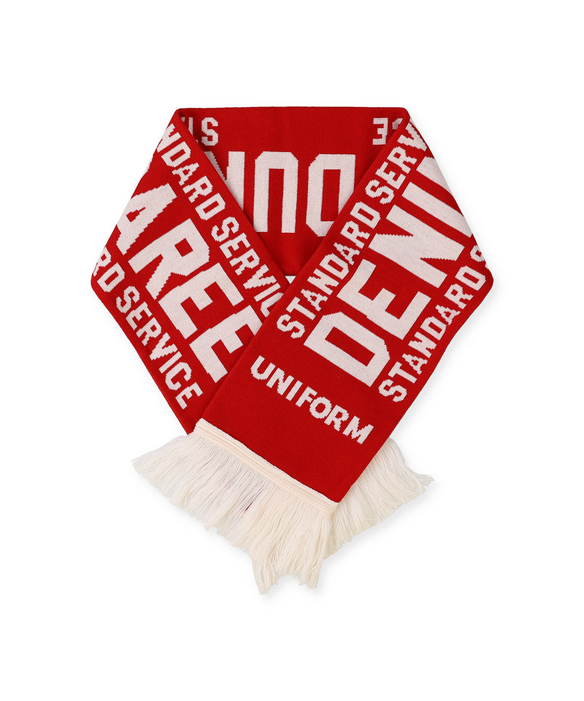 スタイリッシュなデザインのマフラーです。「DENIMDUNGAREE」の文字が大胆にデザインされ、インパクトのある印象を与えます。しっかりとした編み地で、冬の寒さから首元をしっかり守ります。柔らかな素材感が心地よく、デイリー使いにもぴったりです。どんなコーディネートにも合わせやすいので、カジュアルなスタイルから少し個性を加えたい時に活躍するアイテムです。