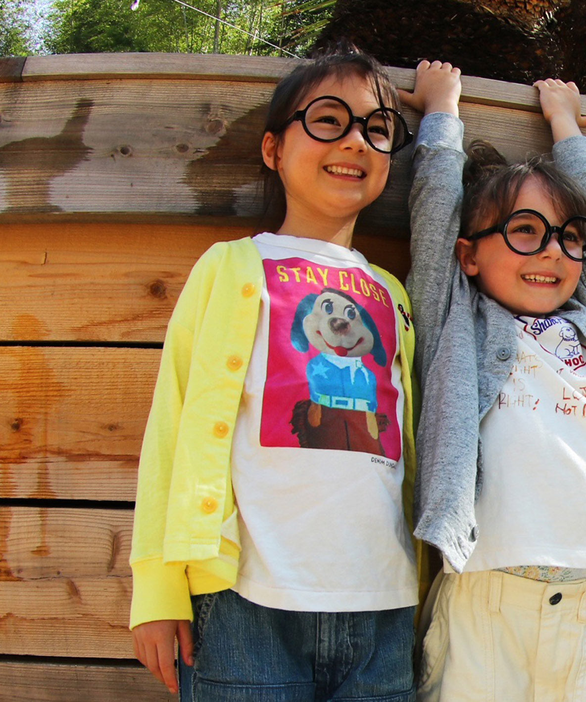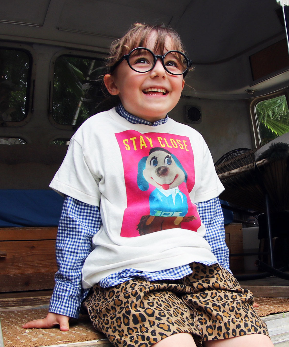 とぼけた表情の犬のPHOTOTシャツ。シャツの中でもチラッと見えて可愛いです。大人がはずしで着てもお洒落です。
