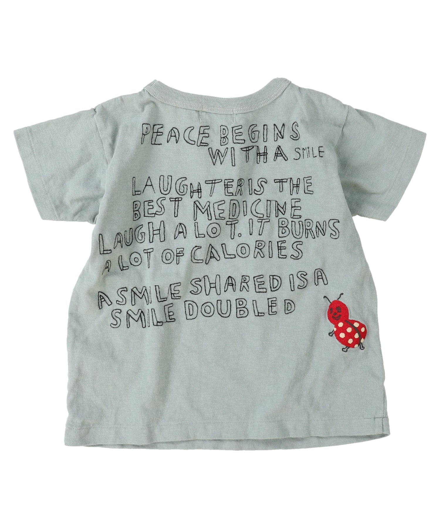 架空のキャンプTVOTEFORSMILE。笑う事は最良の薬などと持ち主が後に手刺繍した設定。何年も着た様な自然な加工で最初から馴染みます。