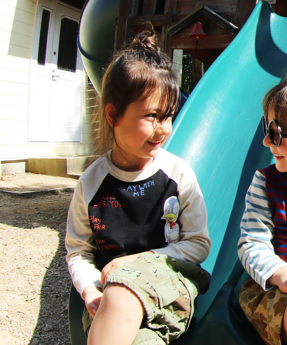 左脇についた綿入りのアップリケが存在感抜群のラグランT。カラフルな刺繍が可愛いです。