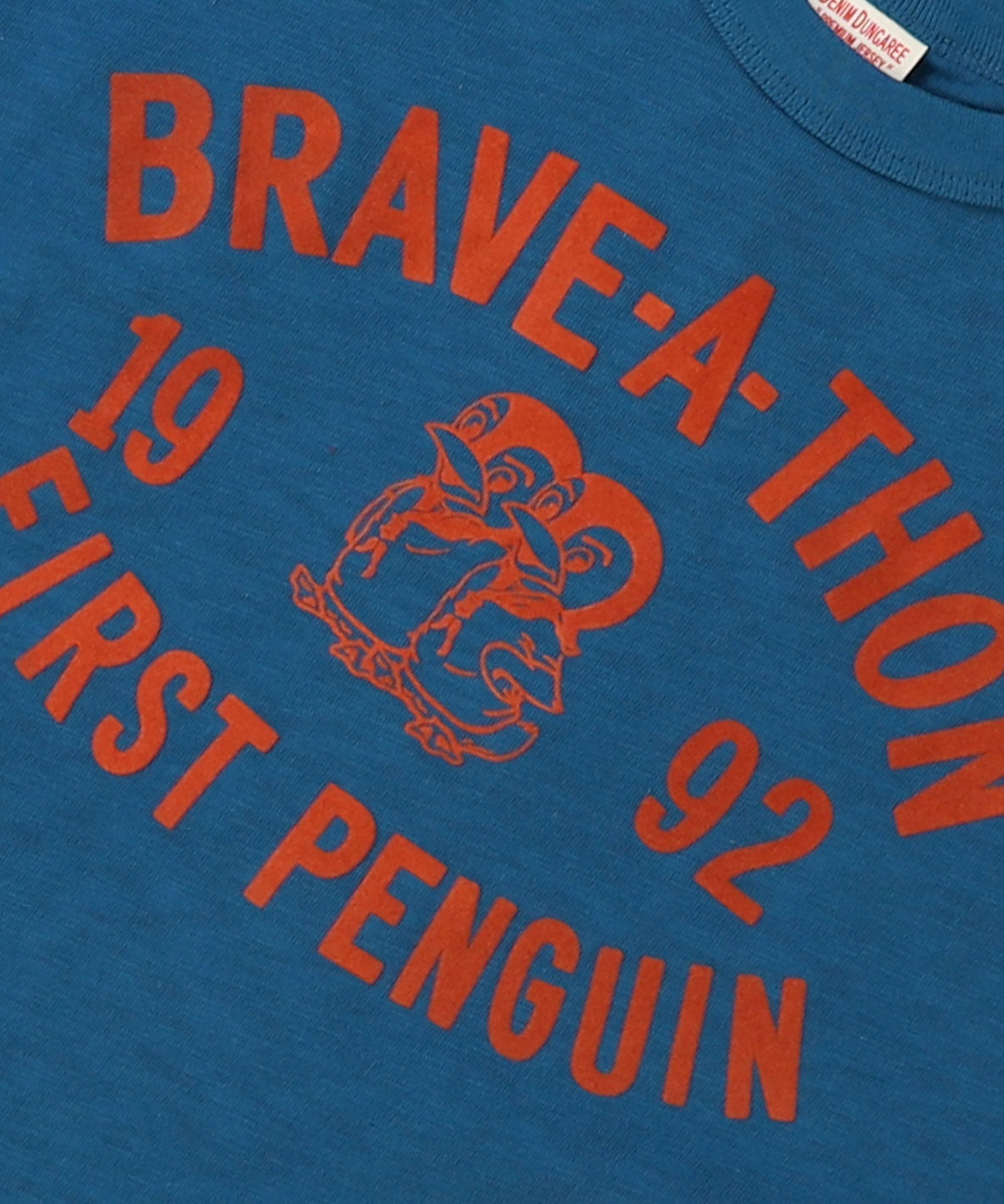 毎年リリースする1stペンギンTシャツ。自ら先頭に立って困難に立ち向かって欲しいというメッセージT。真ん中の愛嬌あるペンギン(眉毛がミソです)と毎年位置を変えるワッペンが人気です。今回はツインズになっています。後左脇から右脇にアーチ状に付けられたアップリケが存在感抜群です。