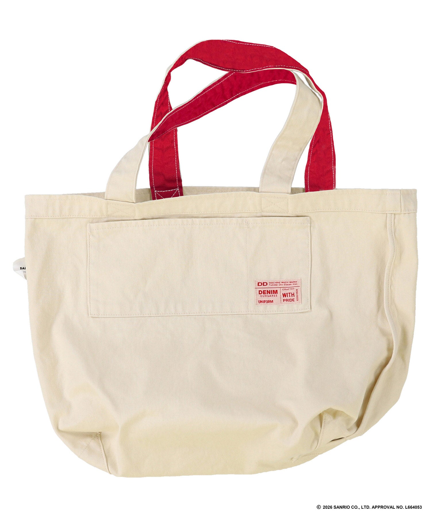 子どもがお気に入りのバッグをサンリオキャラクターズのシールでカスタマイズしたという設定。シールのように見えるのはプリントで洗濯しても剥がれることはありません。プリントを重ねることで生まれた立体感はまるで本物のシールが貼ってあるようで、触れる楽しみも味わえます。かわいい配色で綿100%の丈夫なキャンバス生地を使用しております。