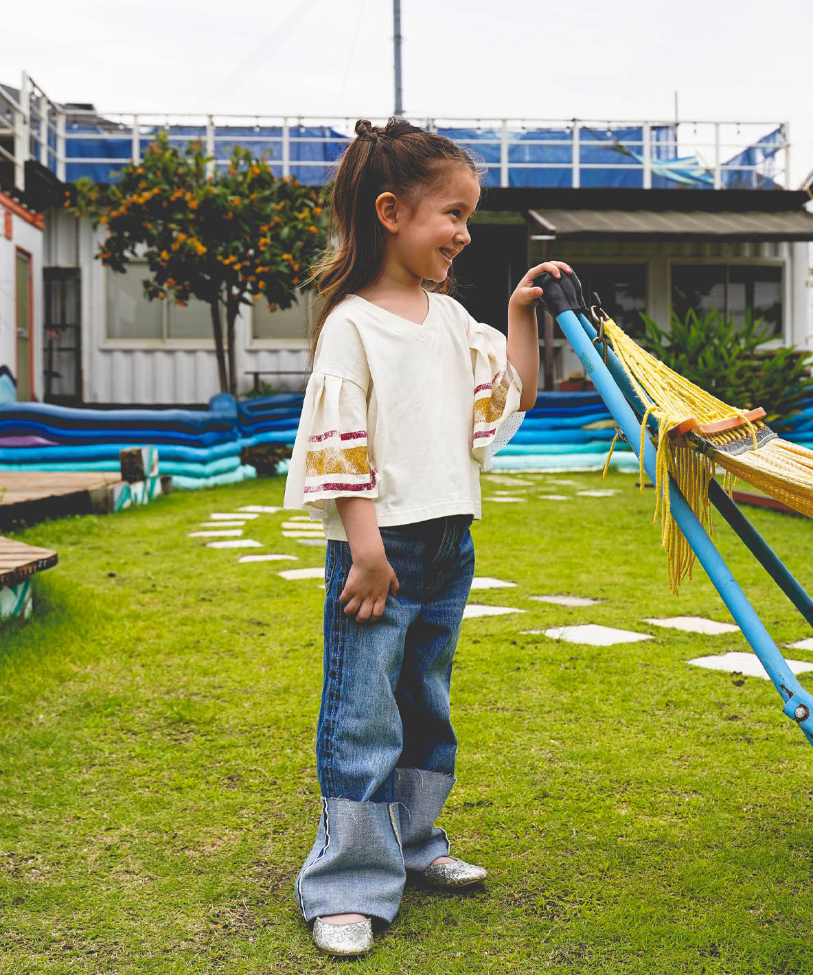 フットボールTのラフなムードに、袖だけ異素材を組み合わせてリメイク風にひとひねり。ワイドめのショートシルエットで、ちょっとだけクセのある、でも着やすい。そんなバランス感。