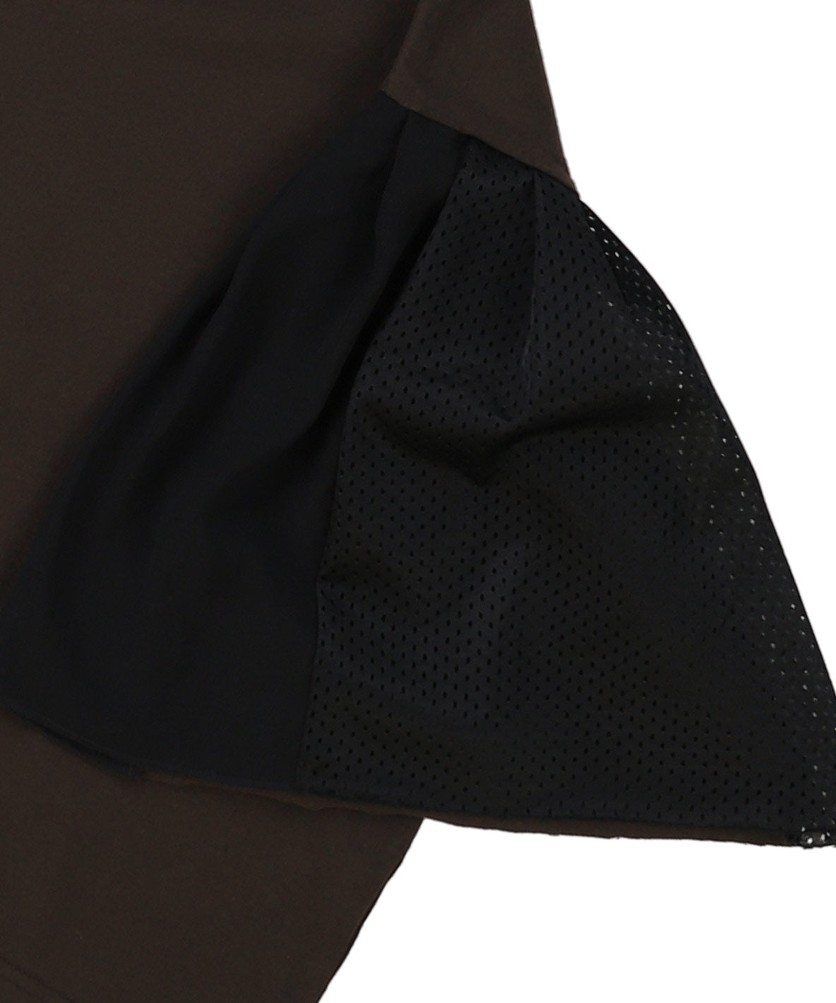フットボールTのラフなムードに、袖だけ異素材を組み合わせてリメイク風にひとひねり。ワイドめのショートシルエットで、ちょっとだけクセのある、でも着やすい。そんなバランス感。
