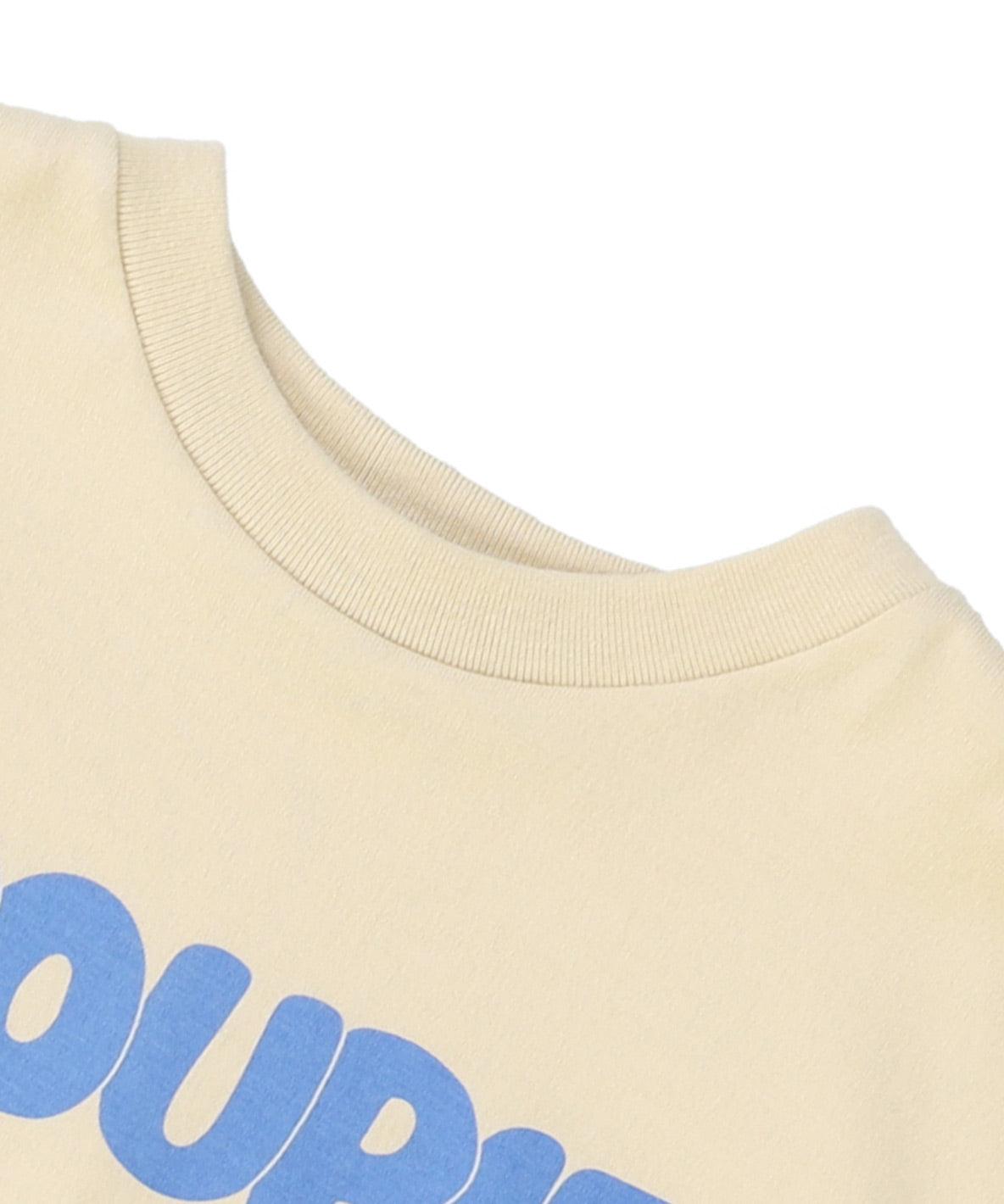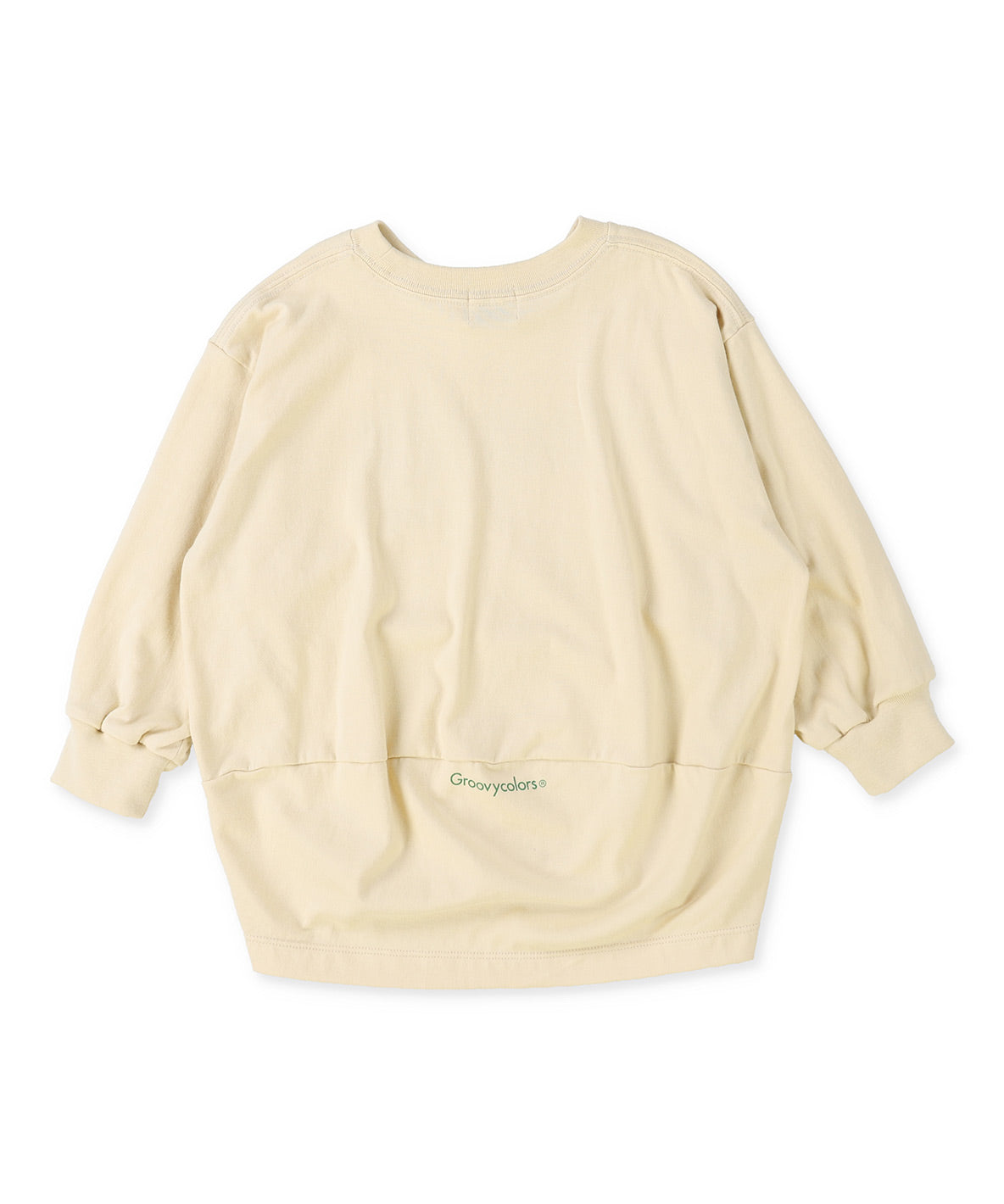 40/2天竺を使用し、切り替えによりヒップ周りが立体的になっていて、後ろ下がりの丸いシルエットが特徴のコクーンシルエットの長袖Tシャツ。 シンプルなロゴもポイントになっています。