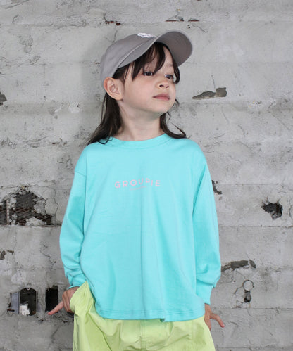 40/2天竺を使用し、全体的にフレアーを入れて後ろ下がりのAラインに仕上げた女の子らしいシルエットのロンT。前後のロゴプリントもポイントになり、シンプルながらデザイン性のあるTシャツになっています。