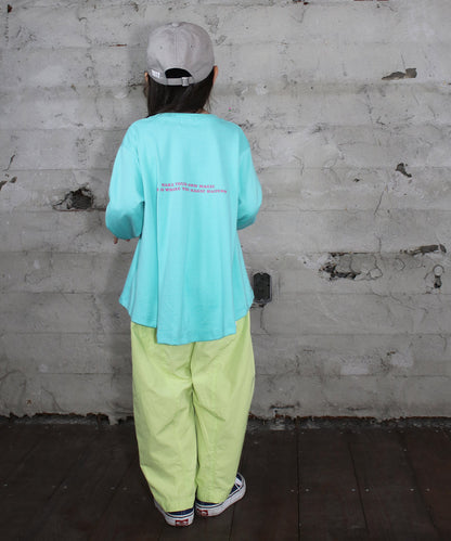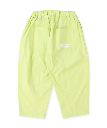 切替等でボリュームのあるシルエットを作ったロングパンツ。 綿、ナイロン、ポリエステルの混合生地を使用しているので、軽くて乾きやすく涼しさもあるので、春夏に重宝するロングパンツとなっています。