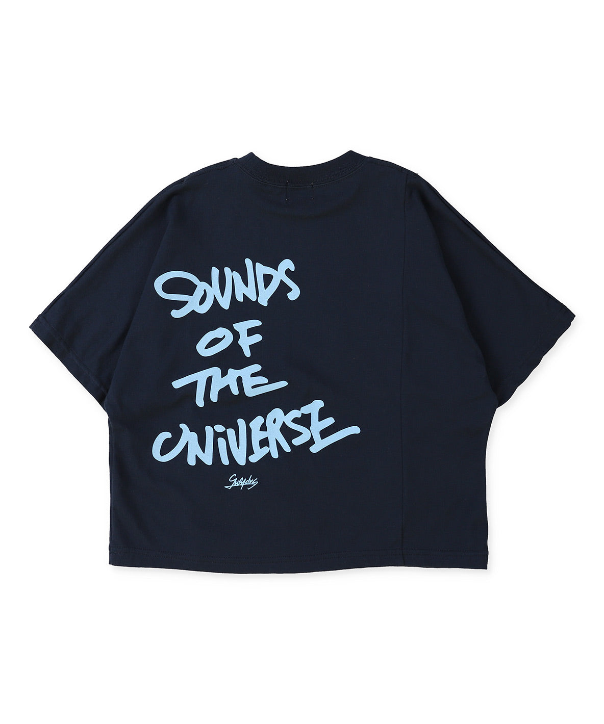 PEANUTS×GROOVY COLORSコラボ商品。 40/2天竺素材のワイドシルエットTシャツ。 袖と身頃が繋がった変形デザイン。 今期は1969年にアメリカNASAが人類初の月面着陸に成功したアポロ計画の頃、コミックに初めて登場したアストロノーツ(宇宙飛行士)スヌーピーのグラフィック。 BACKは宇宙繋がりでSOUNDS OF THE UNIVERSEのグラフィティロゴ。 91CZYのみクレイジー配色。