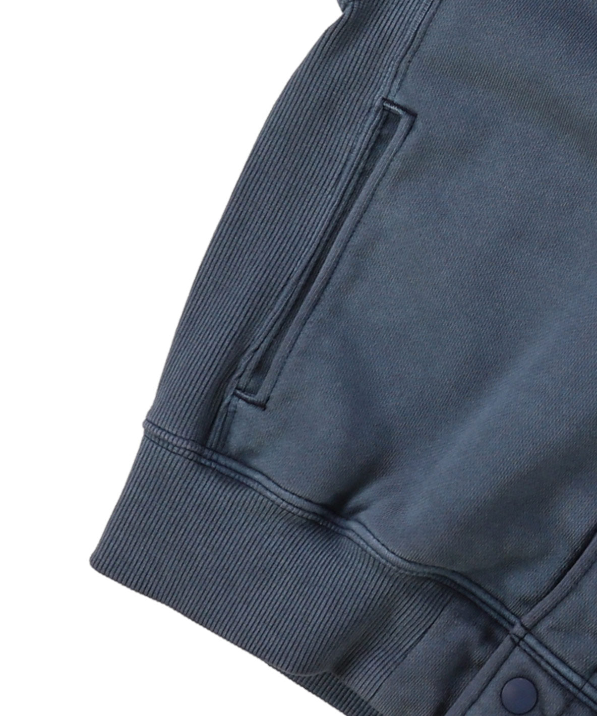 程よい厚みの裏毛素材を使用して、染め加工を施したオーバーダイシリーズ。ややゆったりとした身幅のフード付きスウェットスタジャン型。FRONT左右にはワンポイント刺繍。BACK裾はブランドロゴプリント。製品染めなので製品に個体差が出ます。(色移りする可能性がありますので、他の物と分けて洗濯してください)