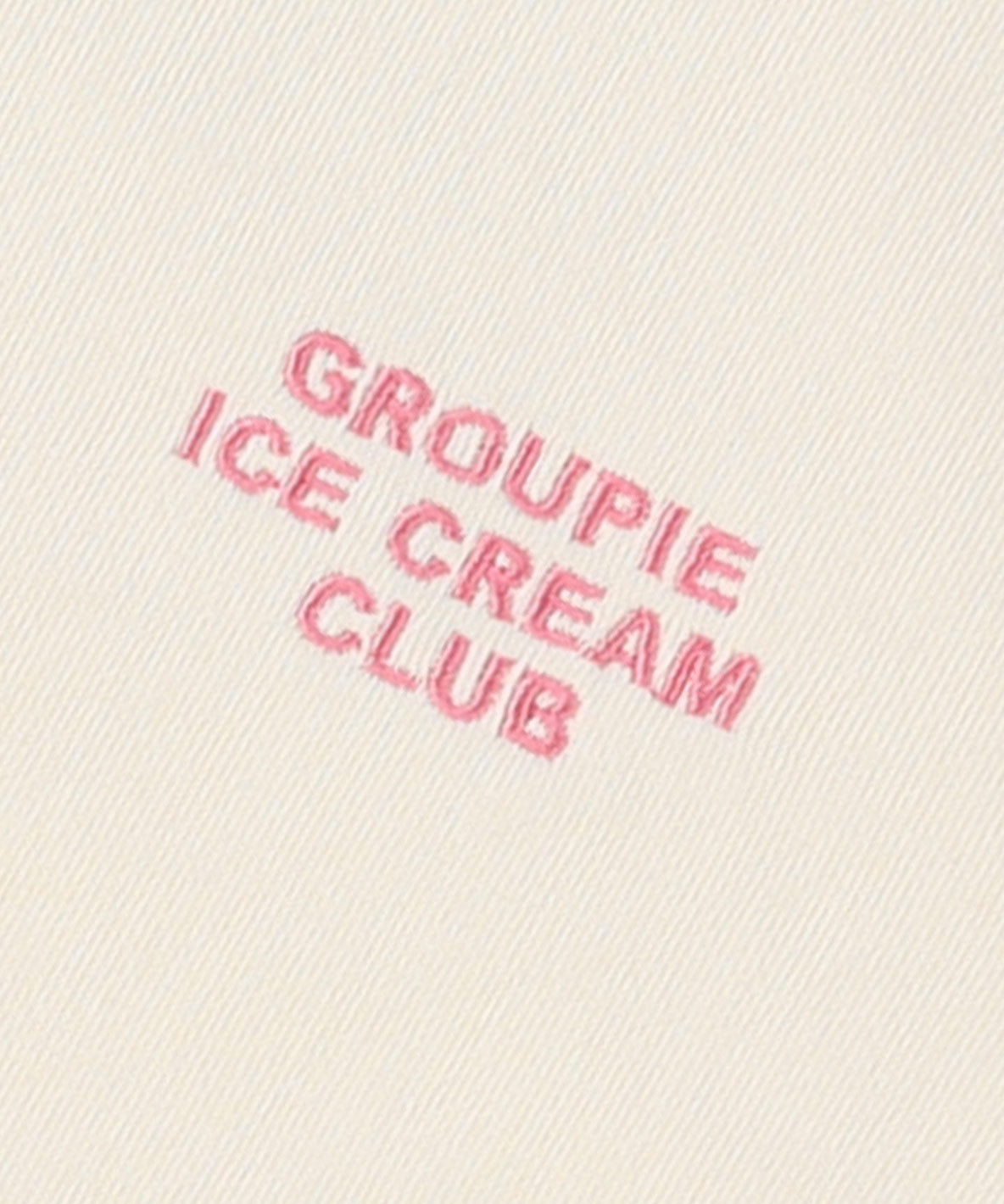 柔らかな裏毛素材を使用した、タックやギャザーでヒップ周りが立体的になっていて後ろ下がりの丸いシルエットが特徴的なスウェット。バックにはアイスクリームサンデーのラインアートを大きくプリント。