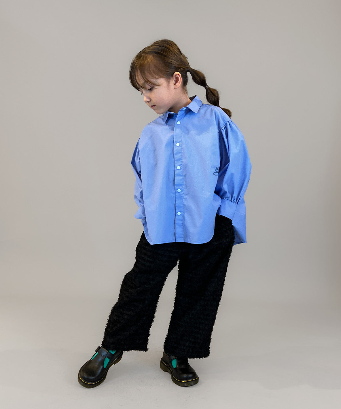 部分的に陰影がついたシアー感が特徴。ウエストのタックでお尻周りはゆったりとしたワイドストレートシルエット。107のシアータフタ変形シャツと組合せて、綺麗目カジュアルスタイルもお勧め。裏地付きで履き心地良く、透けも気になりません。