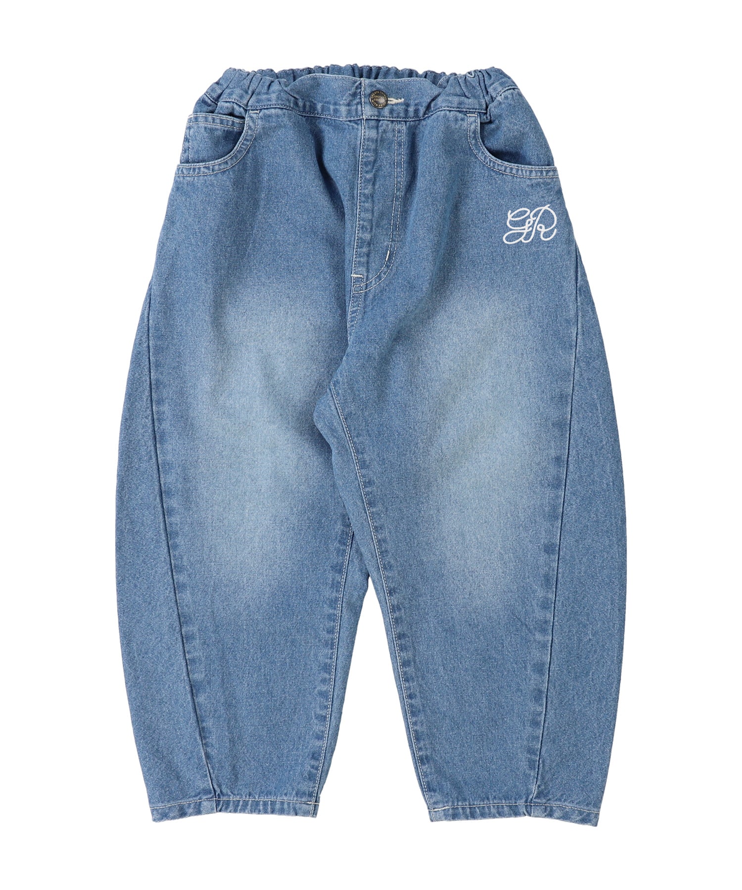 脇の切り替えによって、膝から裾に向かって樽のように丸みのあるシルエットが特徴のバレルレッグ型。カジュアルにもキレイ目にも着こなせる1本です。左前にはgとRを組み合わせたロゴ刺繍。同色同素材の204スタンドカラージャケットとのゆったりしたシルエットのSETUPもお勧めです。