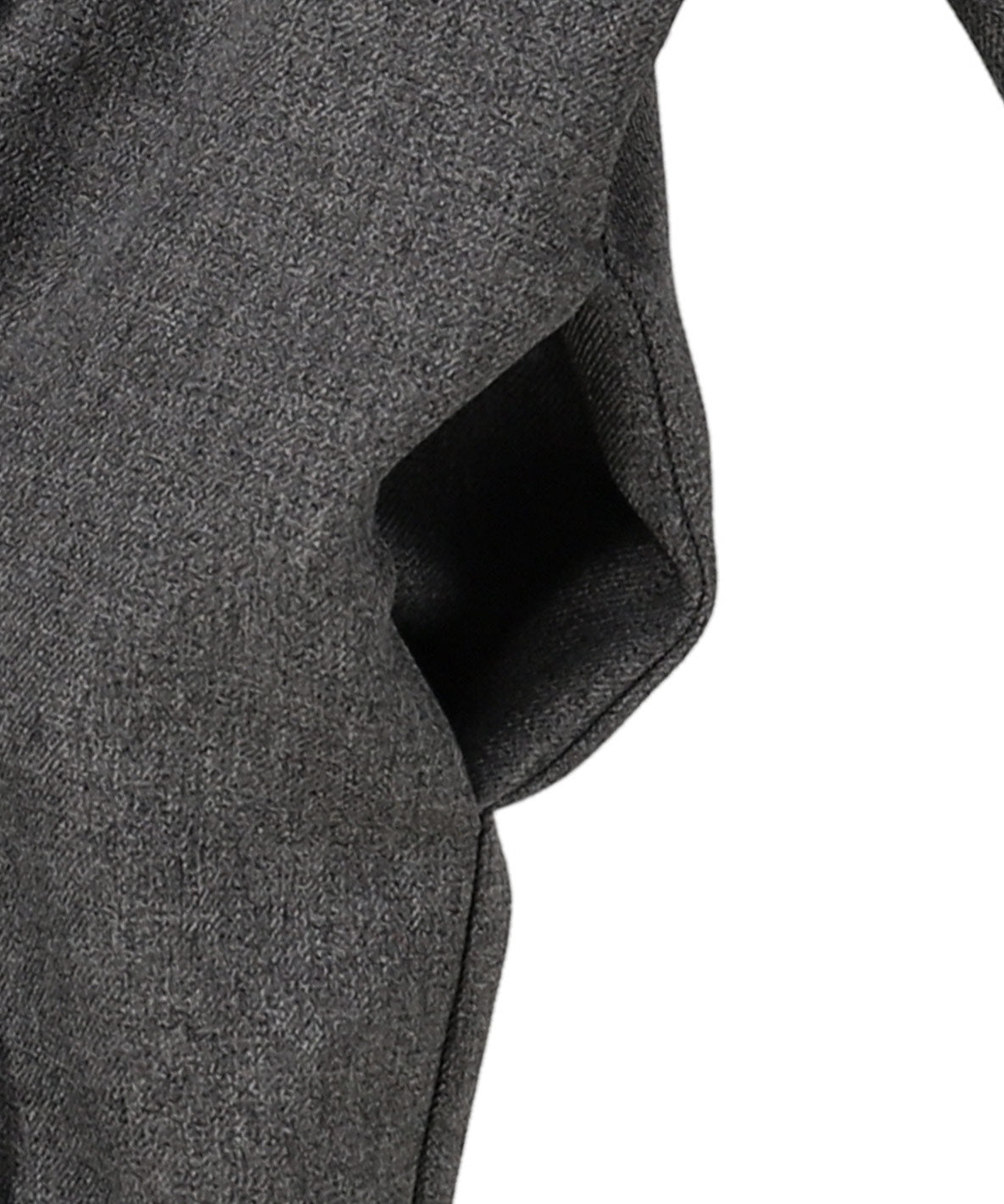 濃淡表現の豊かな糸によるメランジ感、程よいドレープ性とふくらみのある風合いを持ち、イージーケアでピリングもしにくい高感度で機能性の高いウールライクファブリックを使用。